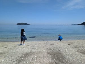 - 波もおだやかで美しい海でした