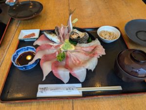 あまべの郷 関アジ関サバ館にていただいた関アジと関サバの海鮮丼がびっくりするほど美味しくて、静かで海が綺麗なまちでした。